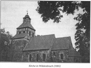 Wildenbruch lag direkt an der wichtigen Heer- und Handelsstraße, die von Beelitz nach Saarmund führte und hatte ebenfalls die Aufgabe, diese Straße zu schützen. Mitte des 13. Jahrhunderts entstand an dieser Stelle eine Wehrkirche aus meterdicken Feldsteinmauern, sie diente den Bewohnern von Wildenbruch auch zum Schutz vor Überfällen. Der Bau ist im romanischen Stil ausgeführt, typisch für die märkischen Dorfkirchen ist das dreigeteilte Dach.